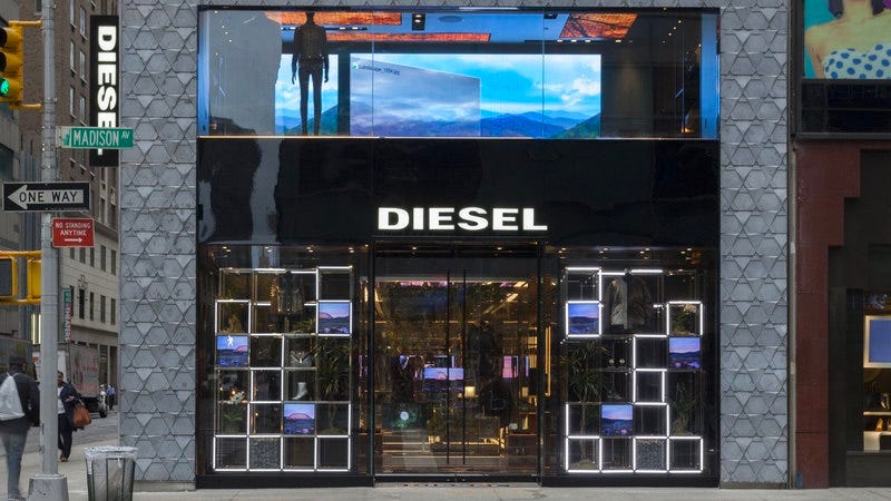 相較於標準化擺放且標示清楚的品牌(例如Gap、Uniqlo),義大利服裝品牌 DIESEL 的一間門市,卻刻意營造有壓迫感的環境,當消費者在貨架間感到迷失時,店員便會現身、開始行動。